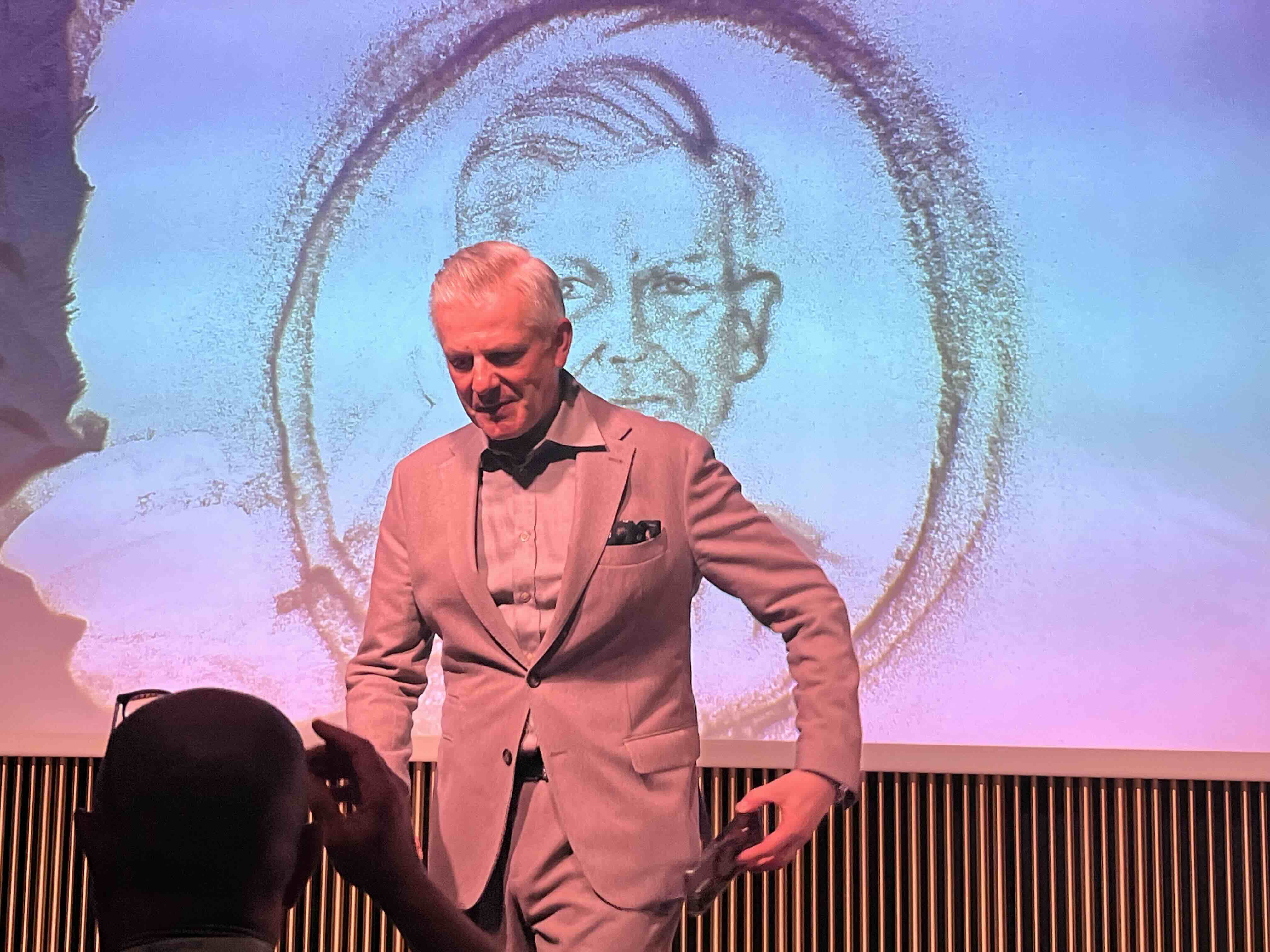 Ein Gast setzt sich hin – und nur fünf Minuten später ist sein Sandportrait live gemalt.